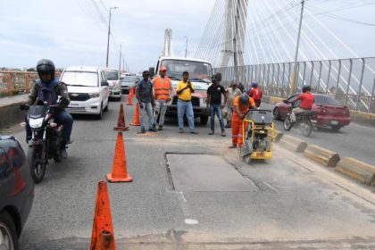 Iniciarion los trabajos de reparación al puente Francisco del Rosario Sánchez (puente de la 17).…