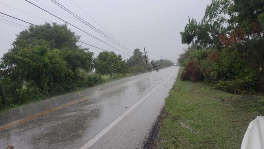 «Los estragos causados por el ventarrón provocaron un bloqueo de vías por caída de postes y cables del tendido eléctrico, incidente ocurrido alrededor de las 4:52 de la tarde, dijo la distribuidora en una nota de prensa.
